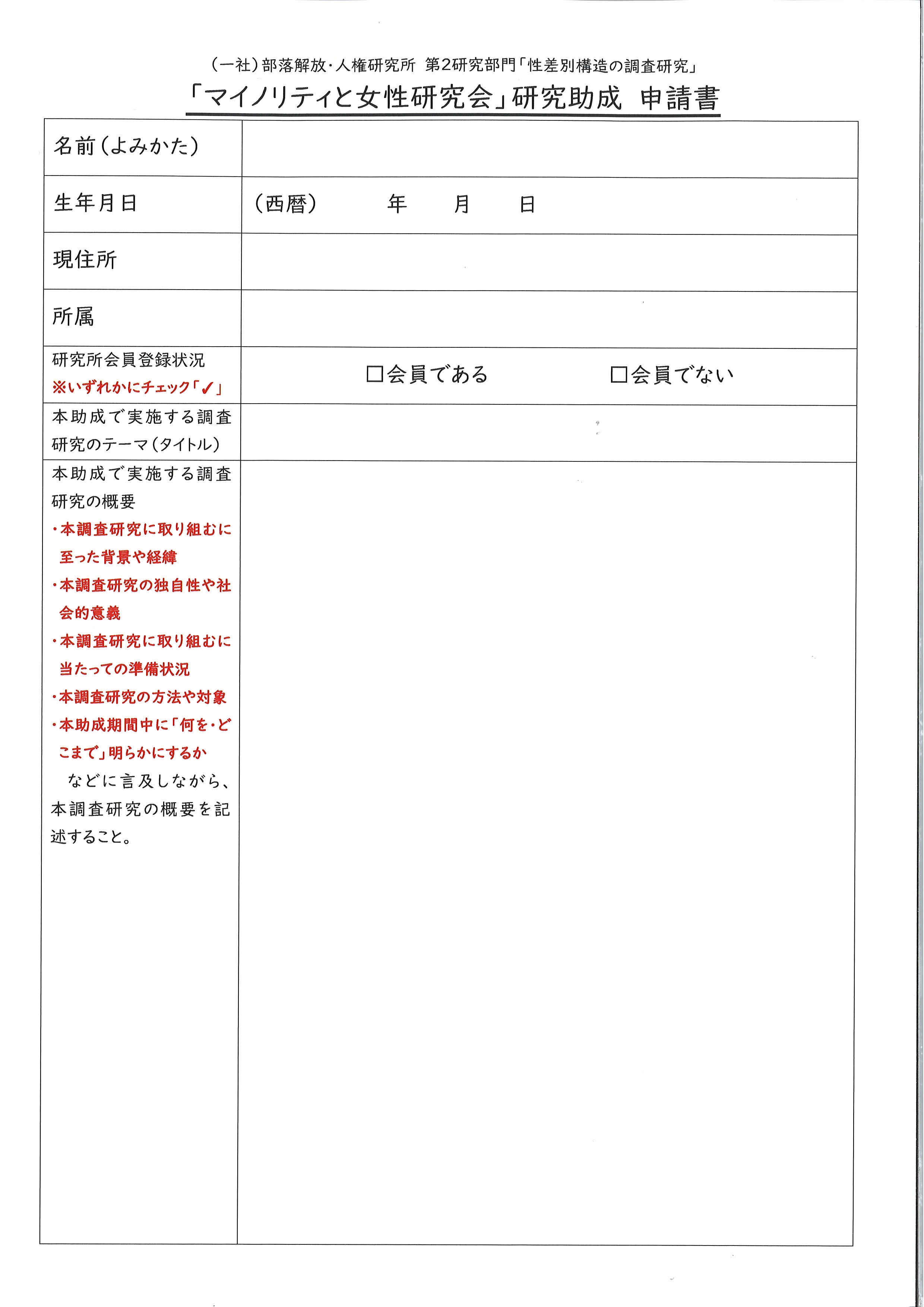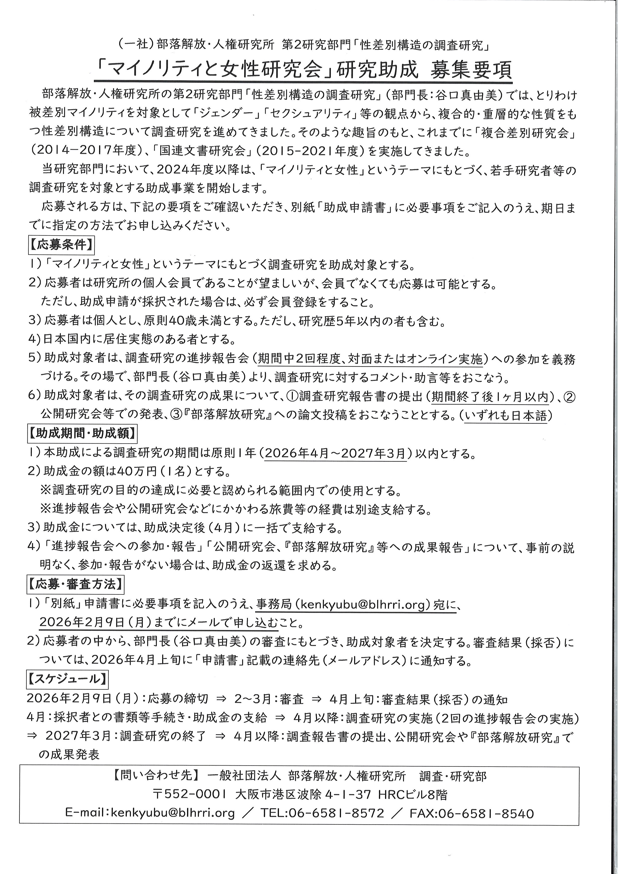「マイノリティと女性研究会」研究助成事業について(応募受付中)